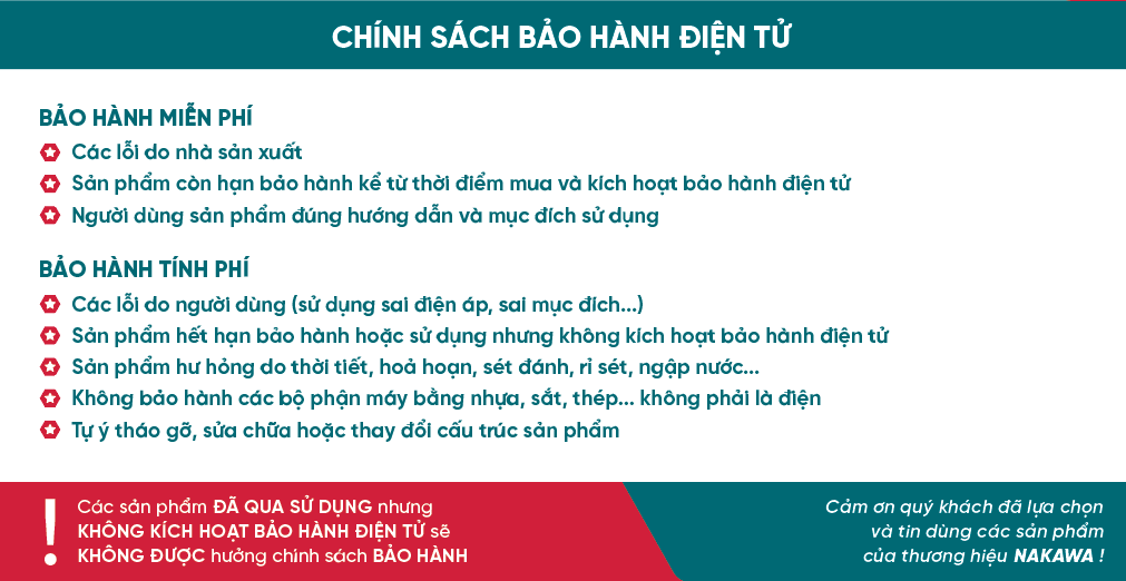 4. CHÍNH SÁCH BẢO HÀNH ĐIỆN TỬ CỦA NAKAWA NHƯ THẾ NÀO?